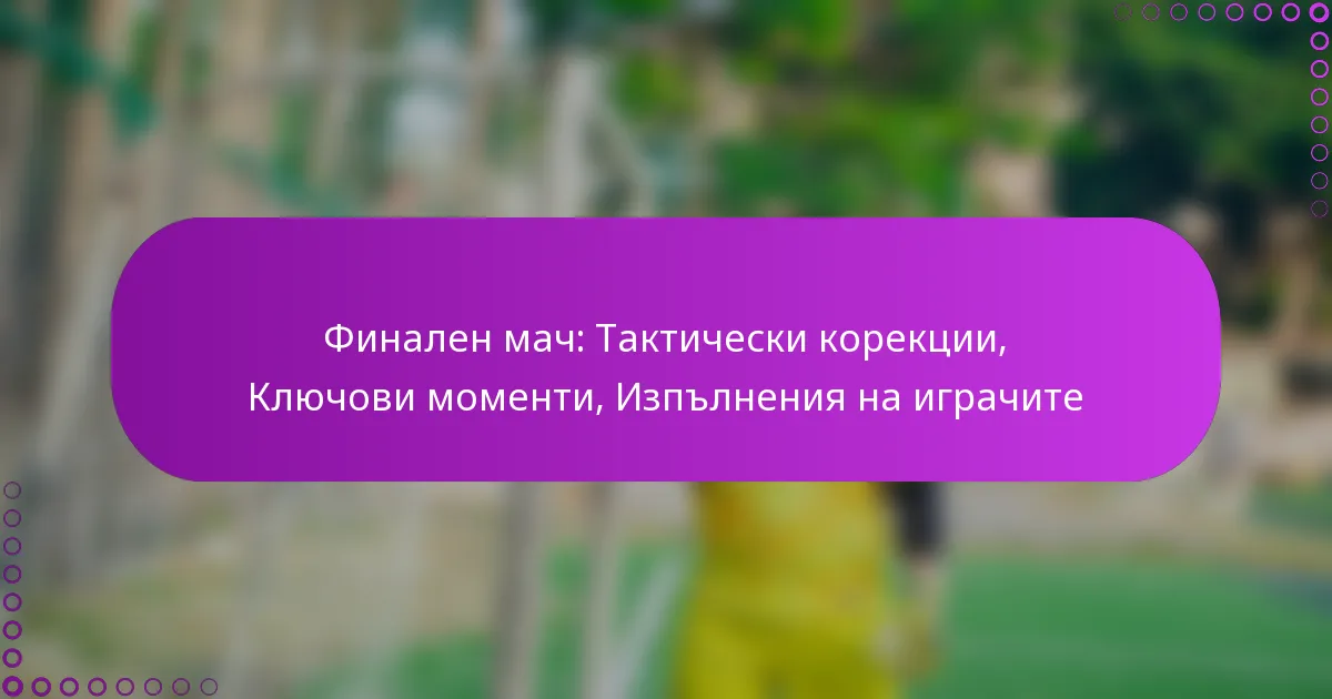Какви тактически корекции бяха направени по време на финалния мач?