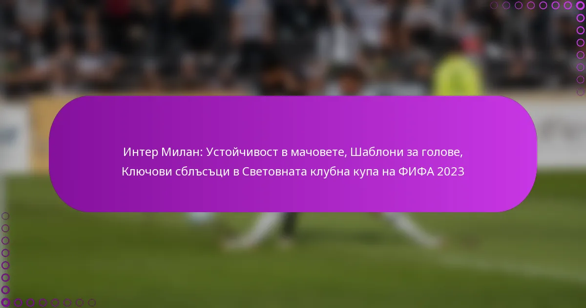 Ключовите мачове, които ще повлияят на представянето на Интер Милан в Световната клубна купа на ФИФА 2023, включват критични сблъсъци между играчи, тактически настройки и влиянието на контузии. Разбирането на тези динамики може да предостави прозрения за това как отборът може да се представи срещу противниците си.