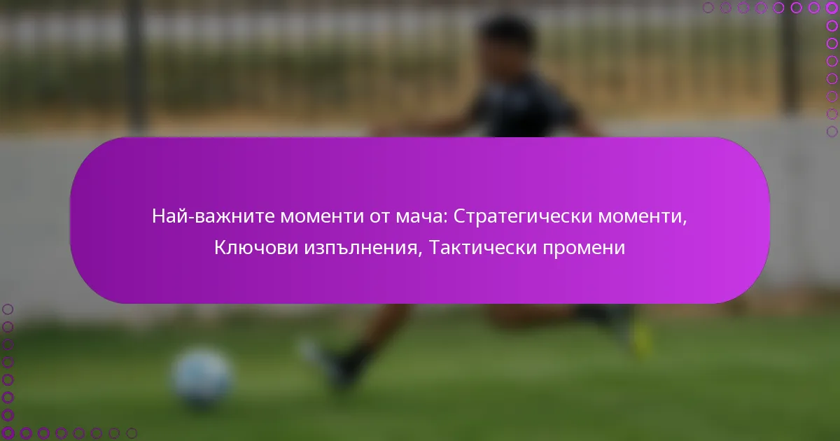 Най-важните моменти от мача: Стратегически моменти, Ключови изпълнения, Тактически промени